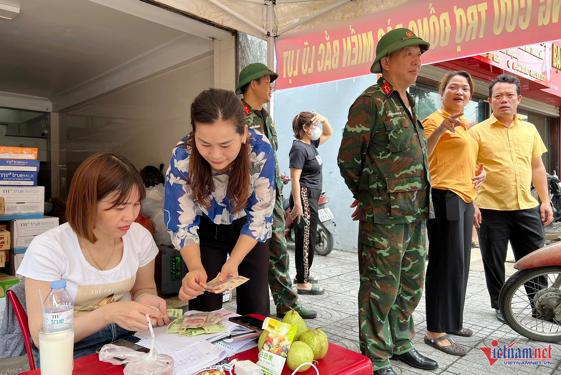 Nhiều người dân tới đây, không ai bảo ai, tự động cùng nhau sắp xếp hàng hoá đưa lên xe tải. Trong khi có rất nhiều cá nhân đến ủng hộ nhu yếu phẩm, tiền mặt cho đồng bào các tỉnh thành miền Bắc.
