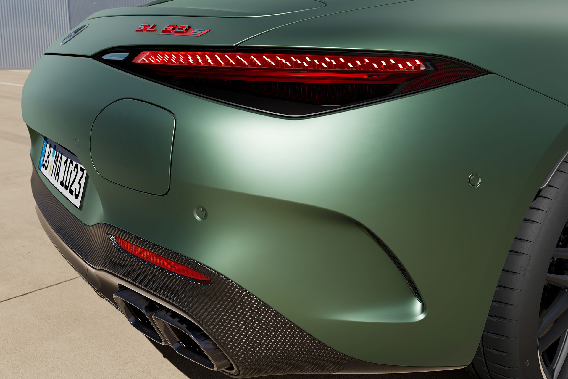 Một số điểm nhấn riêng dành cho Mercedes-AMG SL 63 S E Performance là gói AMG Night Package II, gương chiếu hậu ngoài bằng sợi carbon, la-zăng hợp kim 21 inch đa chấu AMG sơn đen mờ.