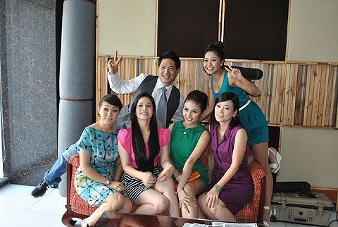 | Dàn diễn viên truyền hình hội ngộ nhau trong phòng thu |