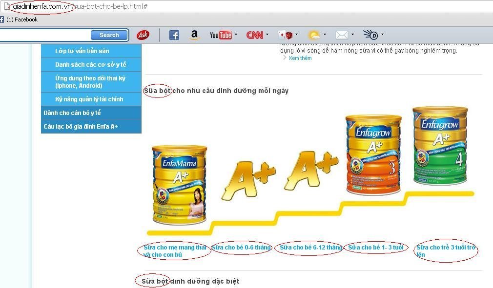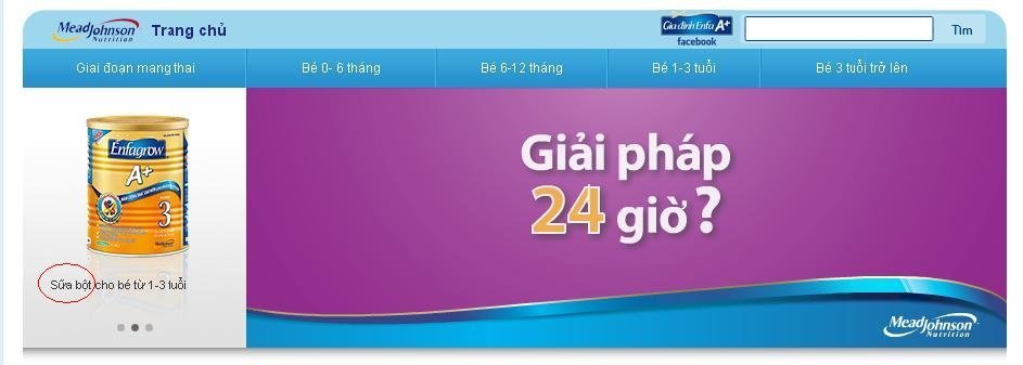 Trên trang web của Mead Johnson vẫn quảng cáo các sản phẩm là sữa bột |