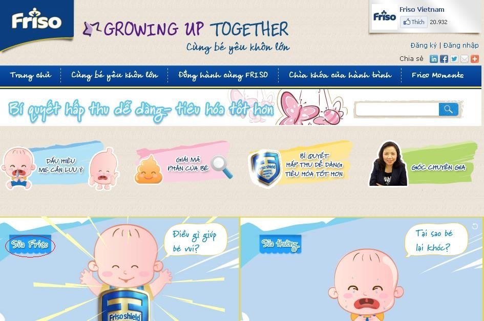 Tương tự, trên trang web của Friso cũng quảng cáo là sữa bột |