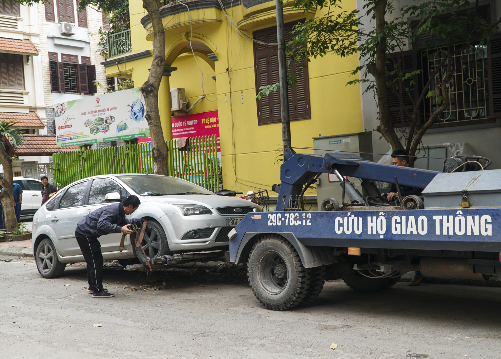 "Qua công tác kiểm tra, một số xe đỗ ngược chiều chiếm dụng lòng đường không có chủ xe đến nhận, chúng tôi niêm phong và kéo xe về bãi để xử lý", đại diện công an phường Cầu Diễn cho biết.