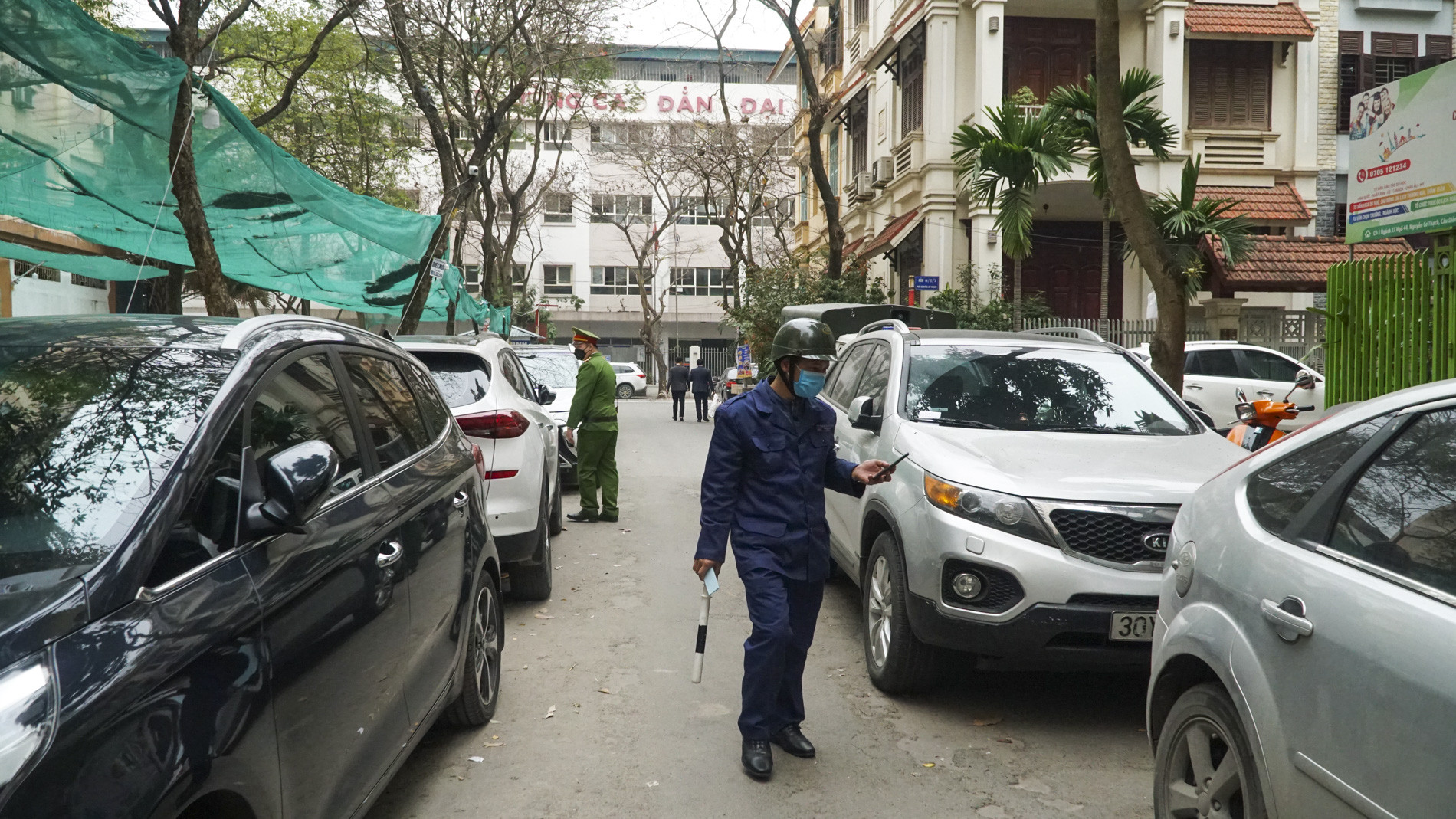 Dù có hàng chục ô tô đỗ lấn chiếm hết lòng đường, nhưng trong sáng 21/2, lực lượng Công an phường Cầu Diễn chỉ xử lý được 3 xe đỗ ngược chiều, không đúng quy định.