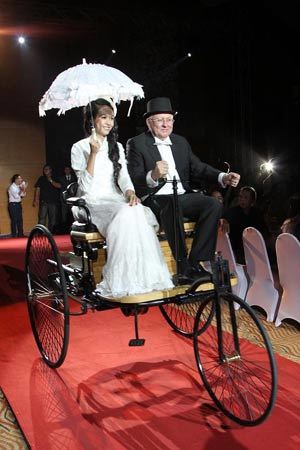 | TS Udo Loersch - TGĐ Mercedes-Benz Vietnam đang lái chiêc 1886 Benz Patent Motor Car - chiếc ô tô đầu tiên trên thế giới |