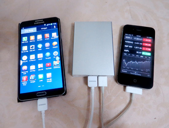 Ví dụ cụ thể, khi một chiếc iPhone 4S hết pin và chẳng may pin dự phòng Power Data cũng trong tình trạng tương tự, người dùng có thể kết nối chiếc smartphone khác là Samsung Galaxy Note III đang đầy pin với Power Data. Ngay lập tức, thiết bị với tính năng nhận diện tự động sẽ ngay “chuyển” điện từ Galaxy Note III sang để sạc cho iPhone 4S.