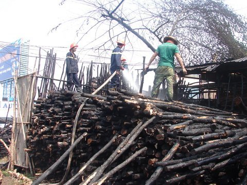 | Lực lượng chữa cháy tích cực dập lửa. |