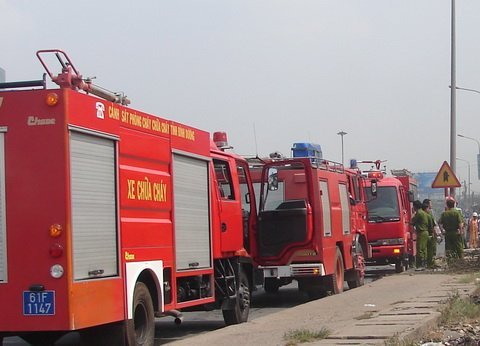 | Xe chữa cháy của phòng CSPCCC Bình Dương chi viện rất vất vả mới đến được hiện trường. |