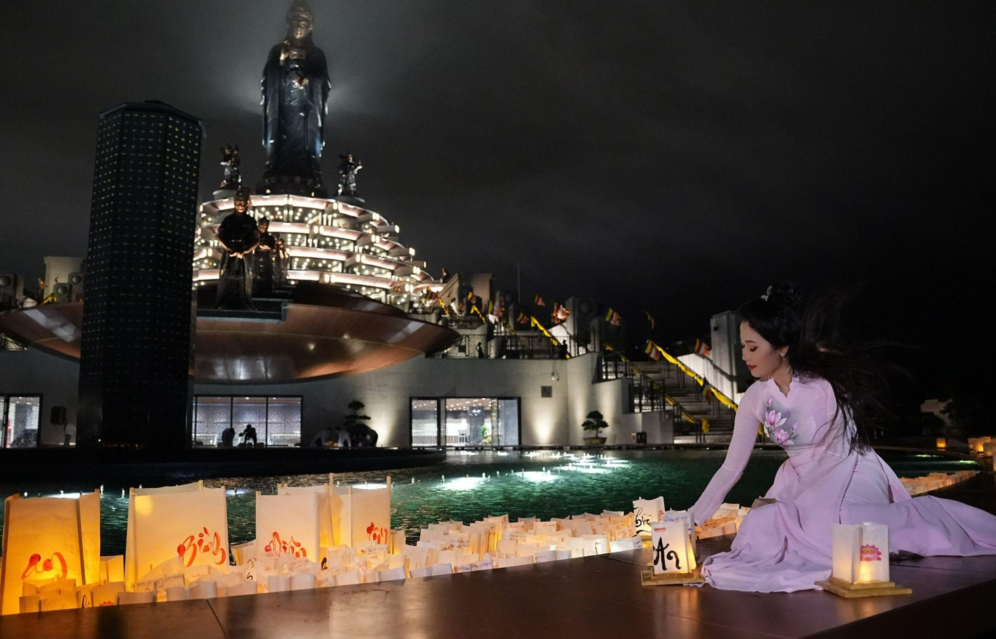 Nghi thức dâng đăng trang trọng, những chiếc đèn đăng gửi theo lời cầu mong an lành đến với mọi nhà được nâng niu trên đôi tay các Phật tử, diễu hành quanh khu vực quảng trường trên đỉnh núi Bà, tỏa ánh sáng lung linh trong đêm sương mây bảng lảng, tạo nên một khung cảnh thiêng liêng.