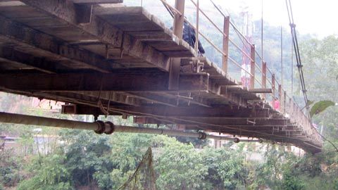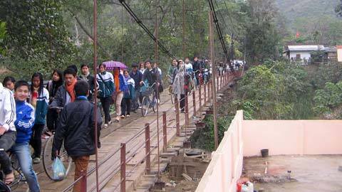 Cầu treo Bản Phảy hàng ngày phải gánh hàng ngàn lượt người đi qua |