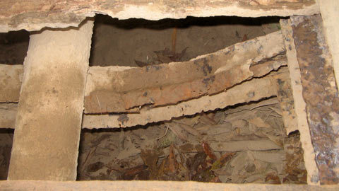 Nhiều thanh dầm của cầu Bản Phảy bị hoen rỉ, gãy từng khúc làm giá đỡ trụ cột cho cây cầu không còn chút an toàn |
