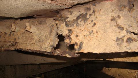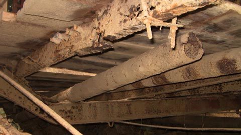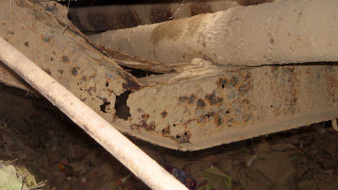 Hầu hết các thanh dầm ngang, dọc của cây cầu đều bị “mục nát”, hoen rỉ, rất nguy hiểm. |