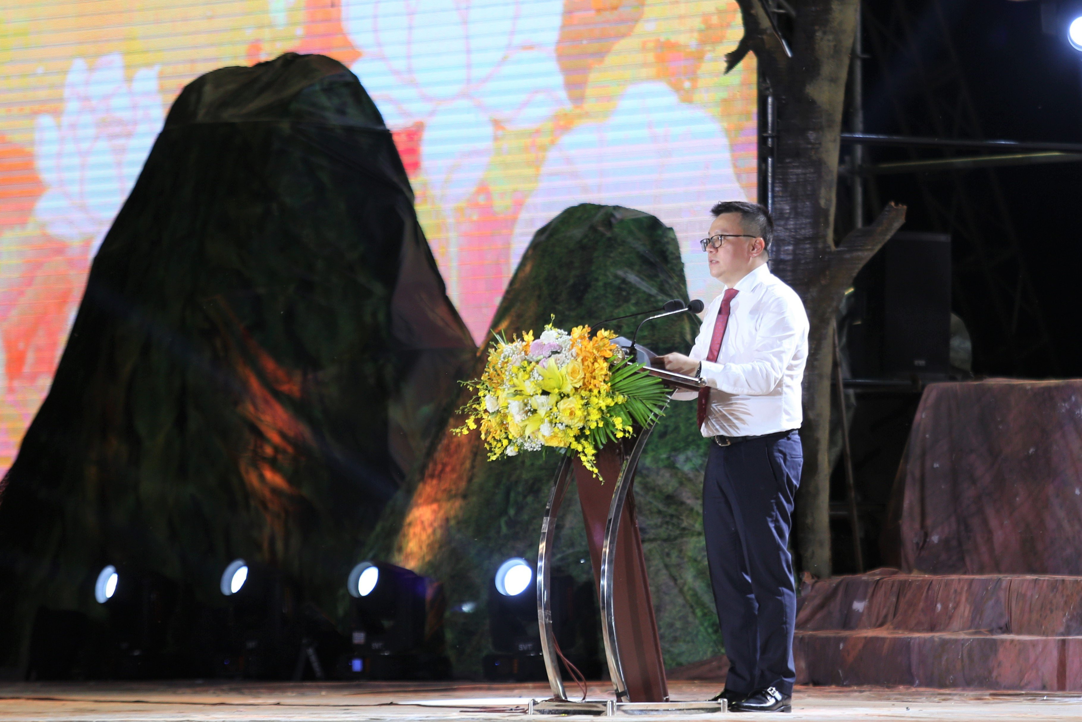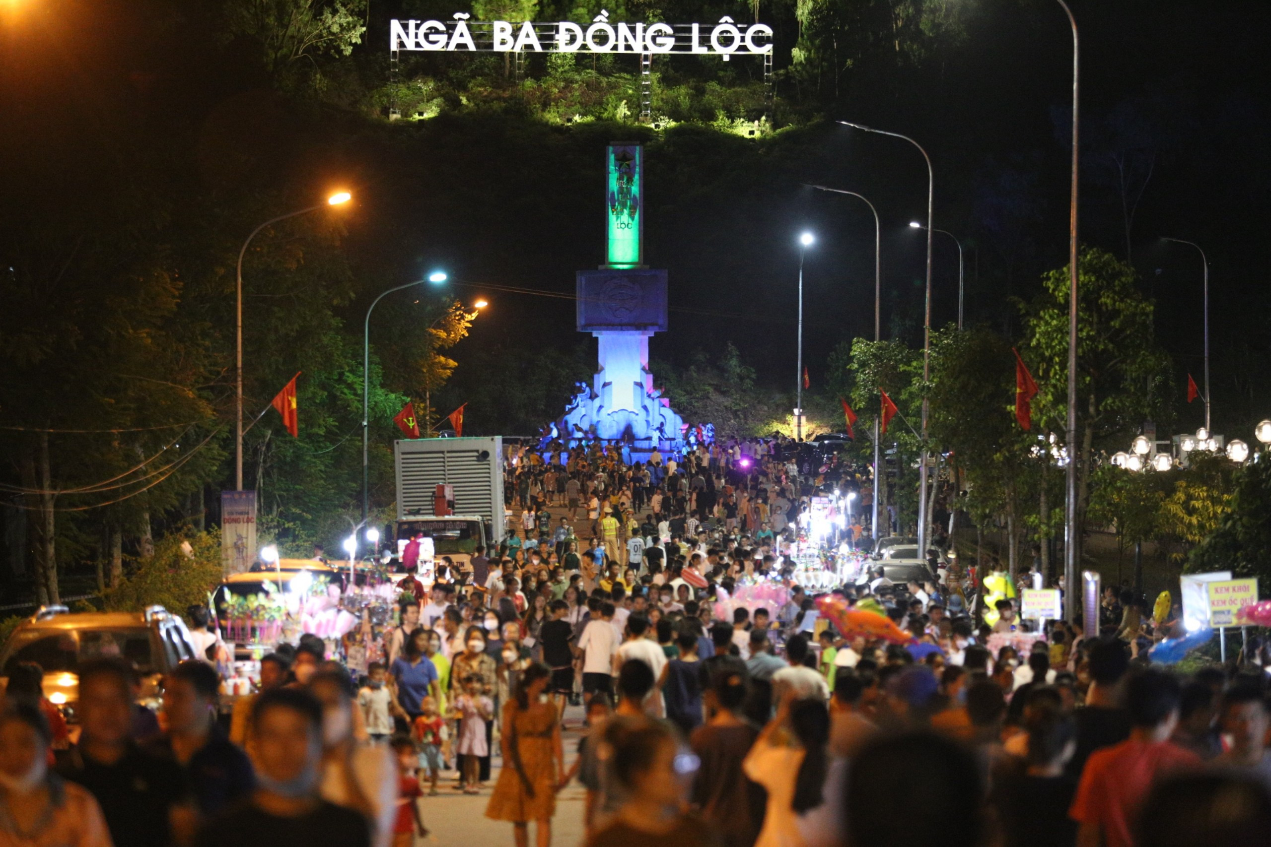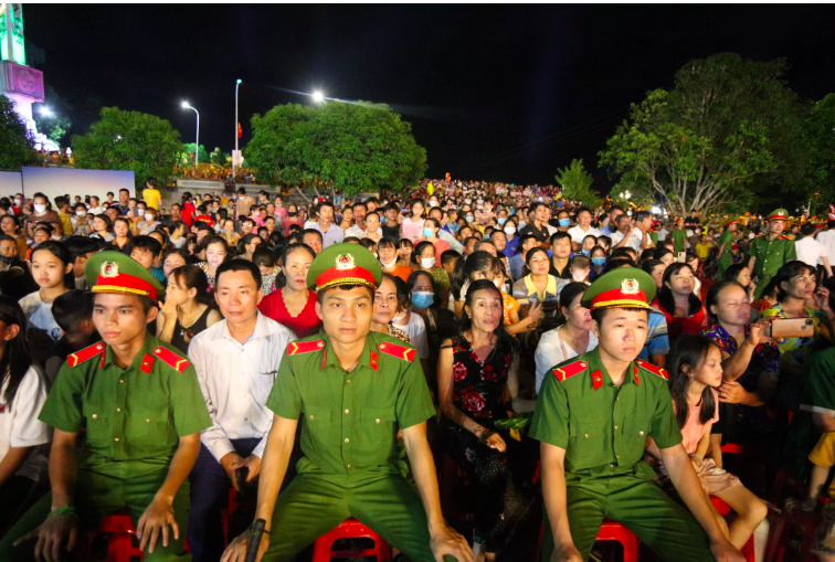 Tối 22/7, hàng nghìn người dân tứ phương đã tập trung về tại Khu di tích Ngã ba Đồng Lộc (huyện Can Lộc, tỉnh Hà Tĩnh) để theo dõi chương trình nghệ thuật "Cõi thiêng Đồng Lộc".
