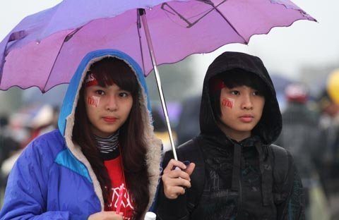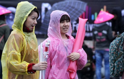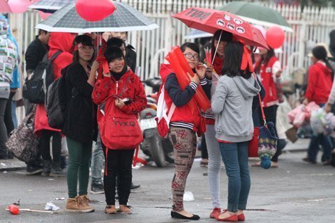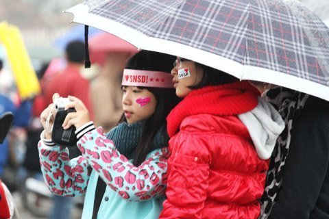 | Mưa, rét không làm giảm sức hút của các sao Hàn đối với các fan Việt. |