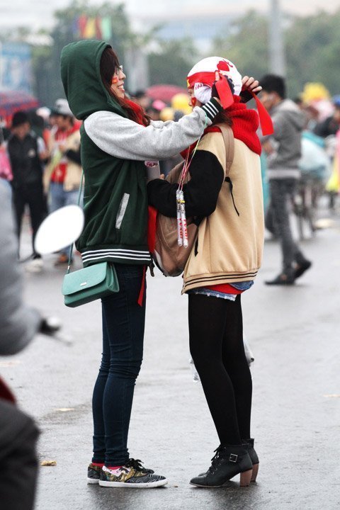 | Fan giúp nhau giữ ấm trước khi vào xem |