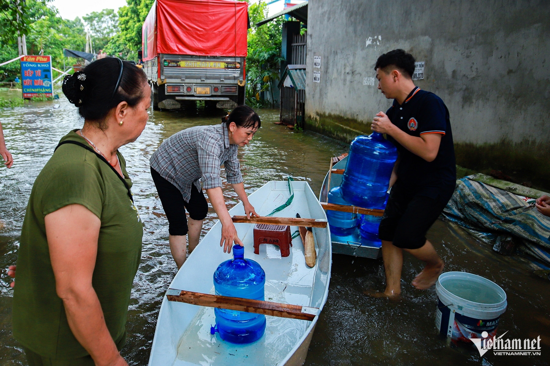 Sau 1 tuần nước sông Bùi tràn qua đê, hàng nghìn hộ dân ở các xã Hoàng Văn Thụ, Tân Tiến, Nam Phương Tiến (huyện Chương Mỹ) vẫn phải di tản. Người cố bám trụ để giữ nhà thì sống trong cảnh thiếu nước sạch, ăn mì tôm qua ngày.