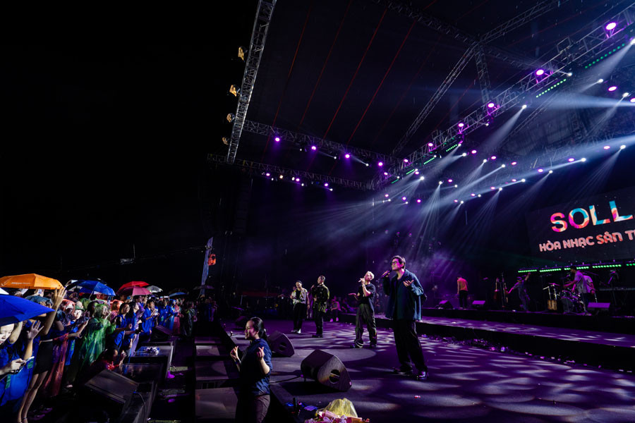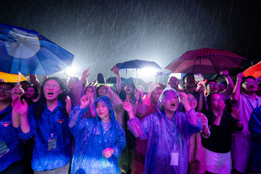 Các khán giả trẻ đã dầm mình dưới trời mưa thưởng thức âm nhạc cổ điển cũng như hoà giọng cùng nhóm Ngũ Cung, Da LAB, trong chương trình "Hoà nhạc sân trường".