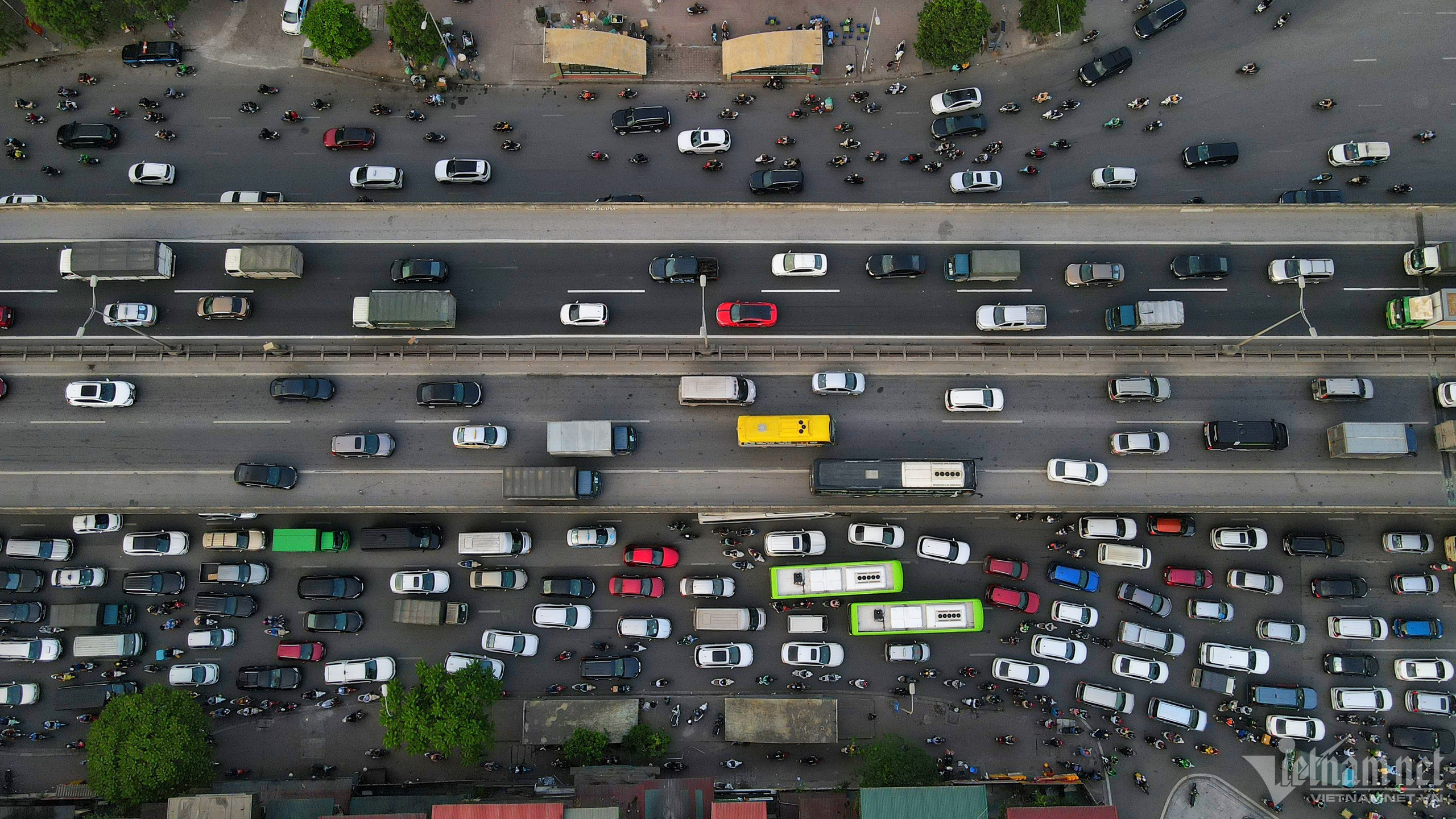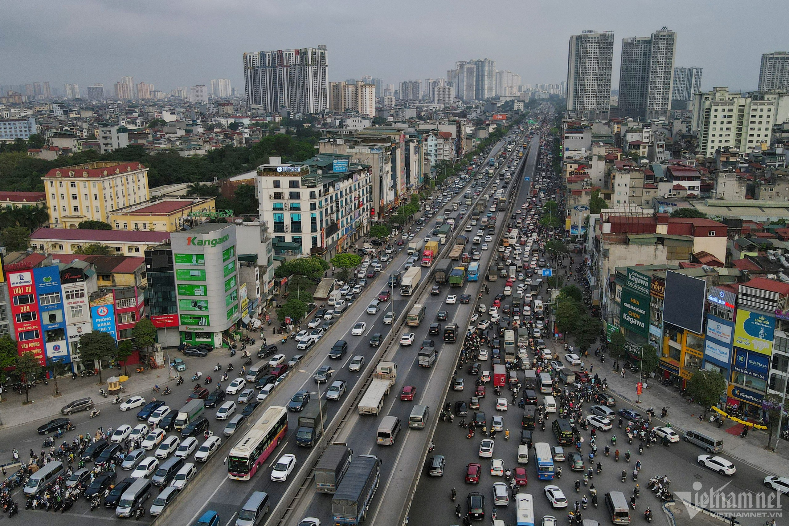 Chiều 28/4, ngày làm việc cuối trước kỳ nghỉ lễ Giỗ Tổ và 30/4-1/5, nhiều tuyến đường cửa ngõ thủ đô bị ùn tắc kéo dài. Trong ảnh là đường vành đai 3 đoạn giao với Nguyễn Trãi.