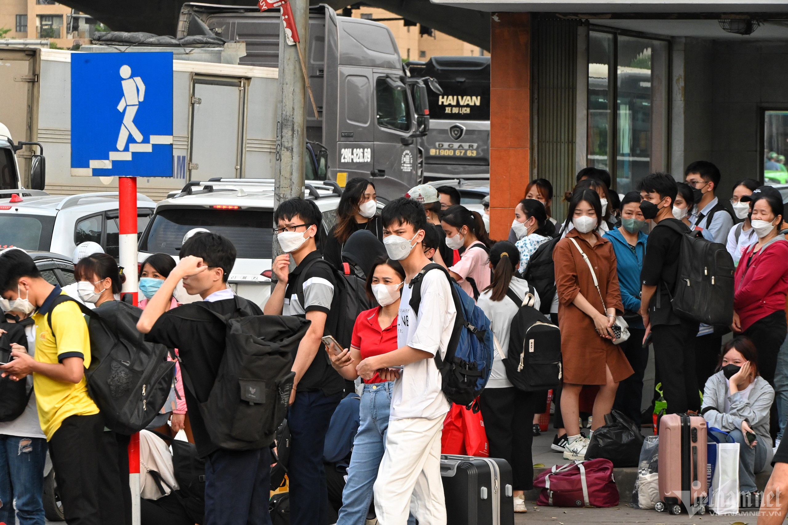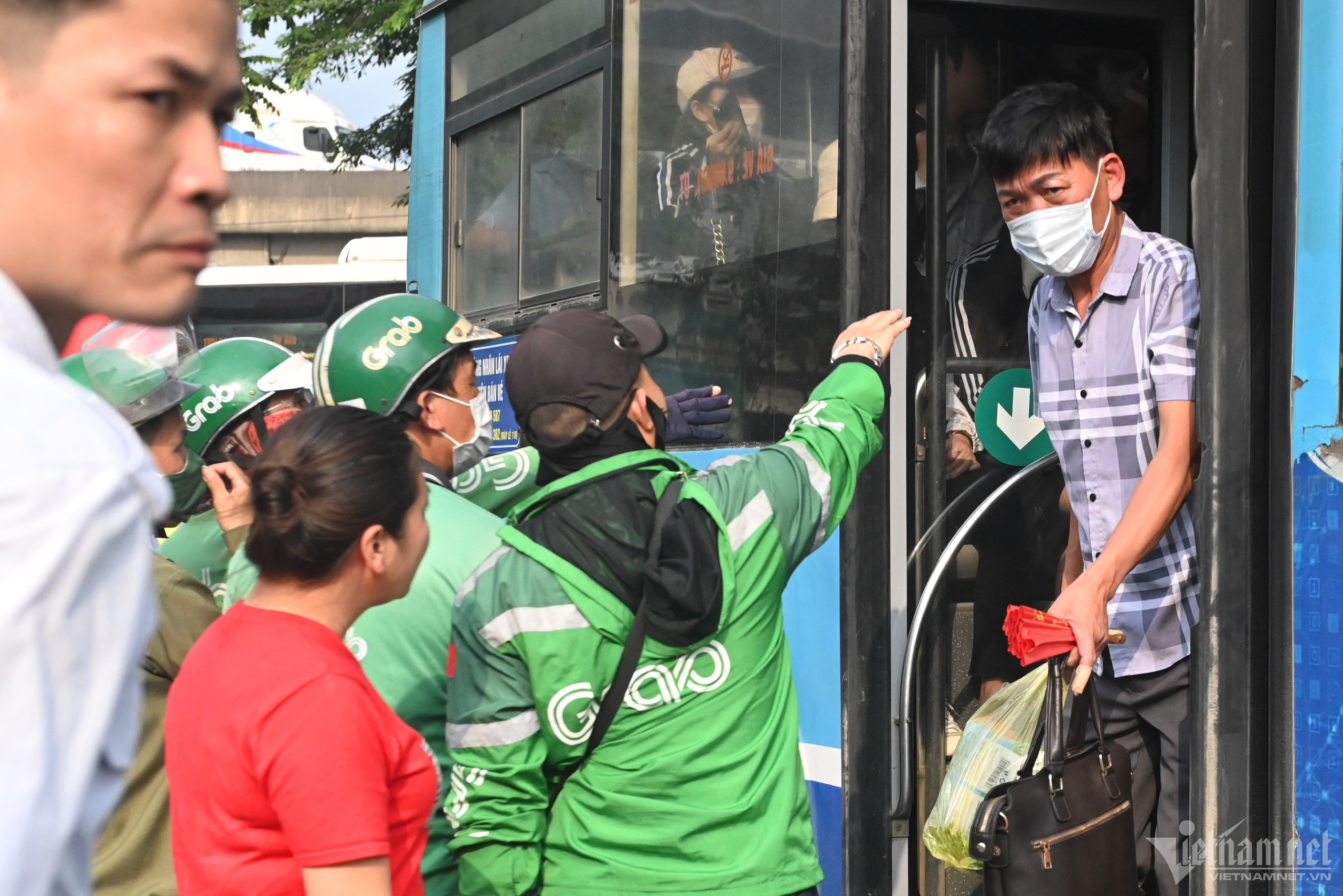 Dịp này, nhiều người từ xa cũng trở về thủ đô hoặc "quá cảnh" Hà Nội. Những người lái xe ôm, phụ xe khách thi nhau lao tới tận cửa xe mời chào mỗi khi có xe khách tới.
