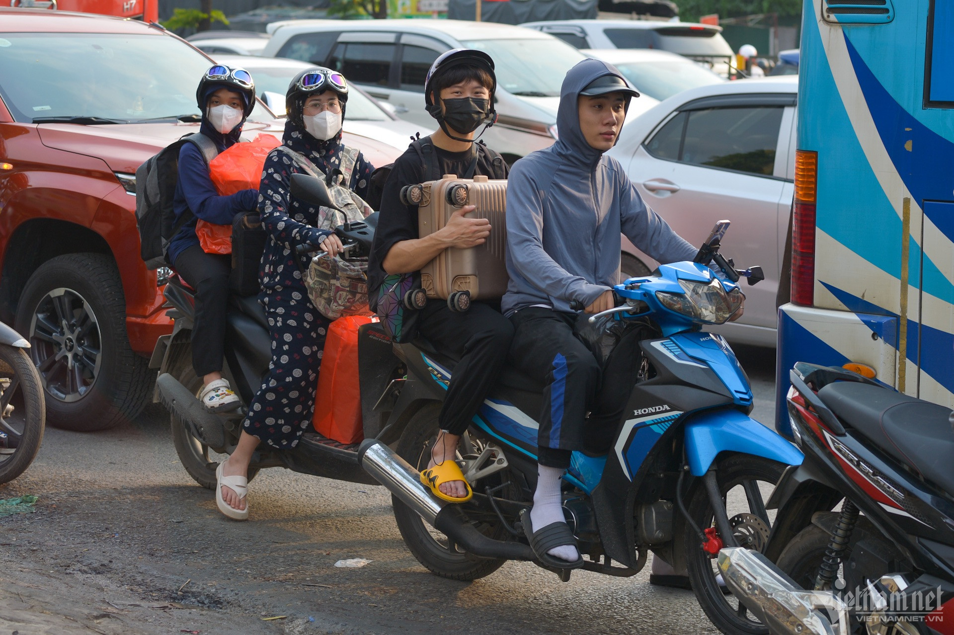 Nhiều người chọn cách đi xe máy về quê để không phải chịu cảnh nhồi nhét, chen lấn trên xe khách.