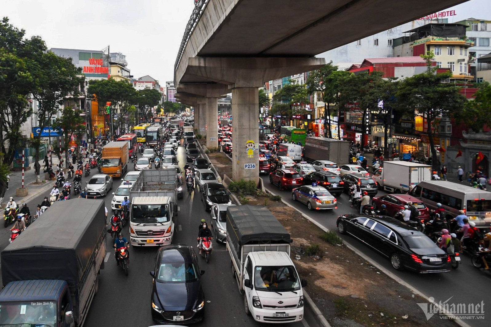 17h, dòng phương tiện nối hàng dài trên đường Ngọc Hồi (quận Thanh Trì).