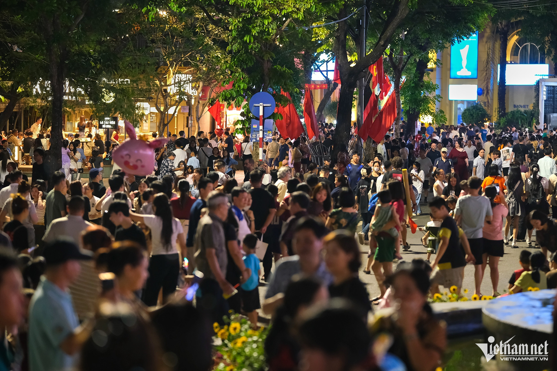 Dòng người đông đúc di chuyển qua các phố Lê Thái Tổ, Đinh Tiên Hoàng.