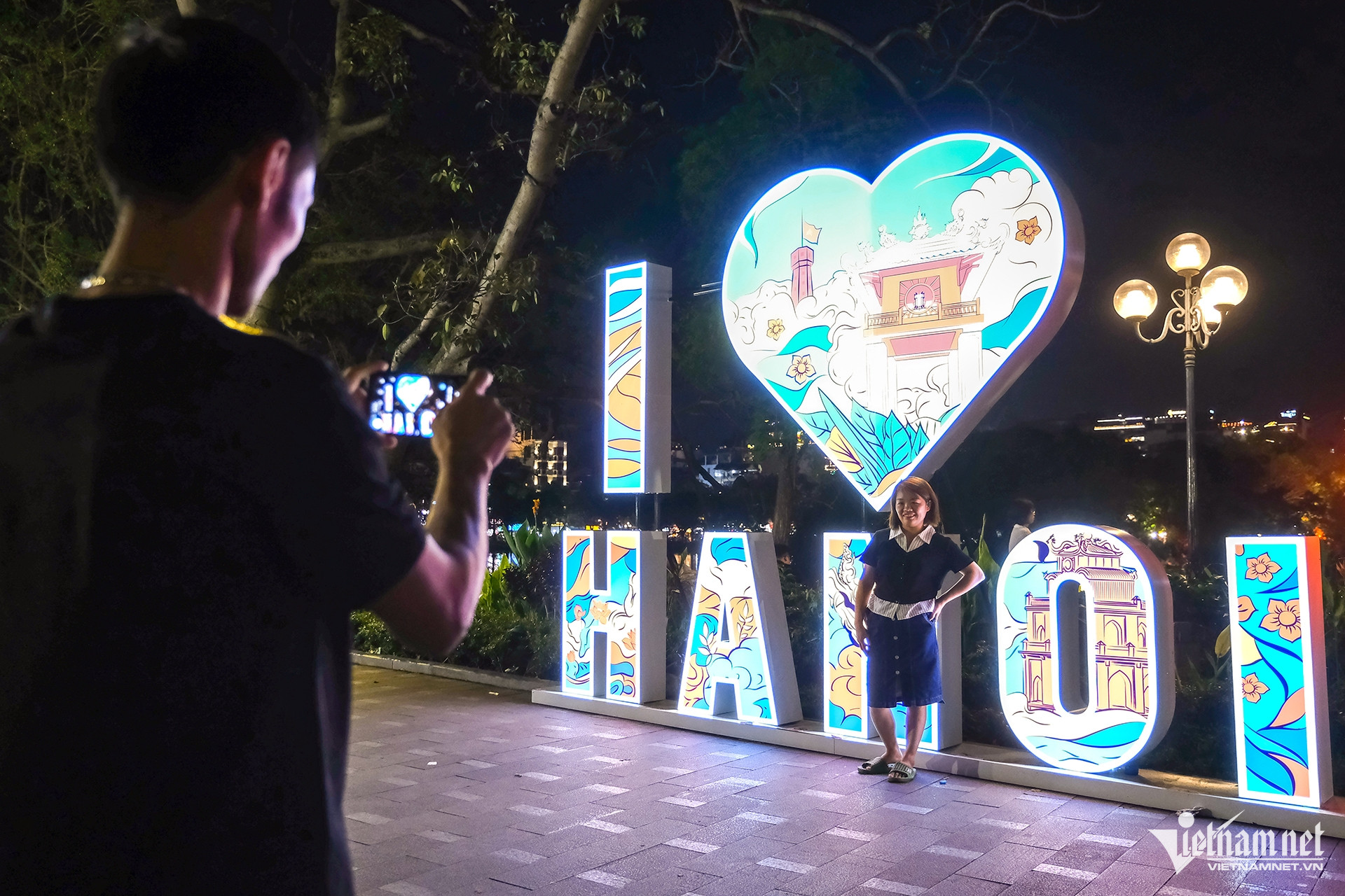 "Nghỉ lễ chỉ được ít ngày, lại có cháu nhỏ đi cùng nên chúng tôi qua hồ Gươm vui chơi, ăn uống, thư giãn thay vì đi chơi xa", chị Liên chia sẻ.