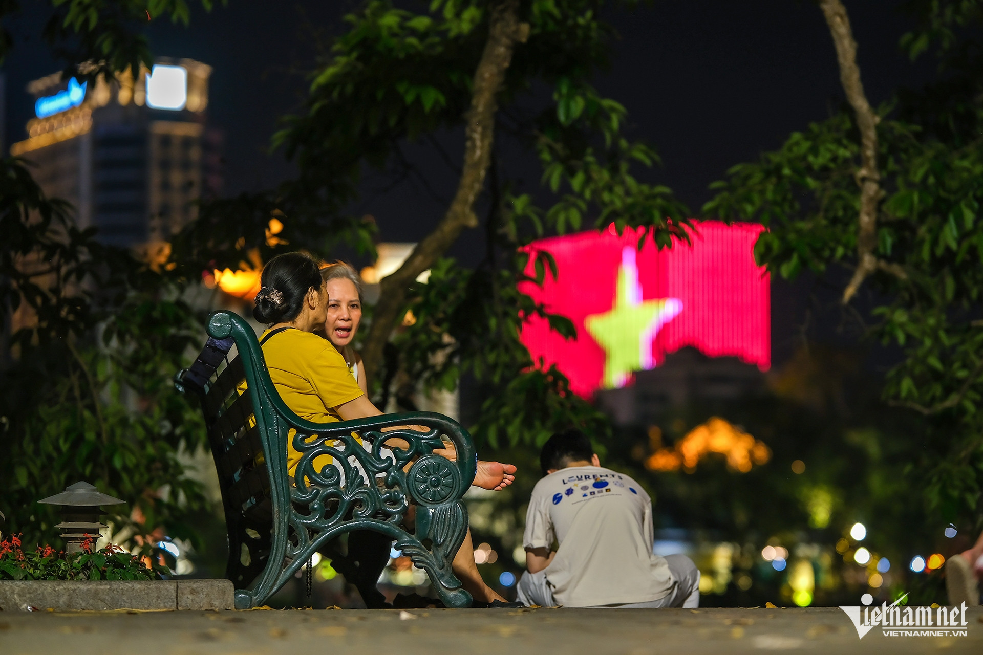 Thời tiết ngoài trời mát mẻ, dễ chịu với mức nhiệt về đêm khoảng 25 độ C. Người dân thư thái dạo phố, ngồi trò chuyện quanh bờ hồ.