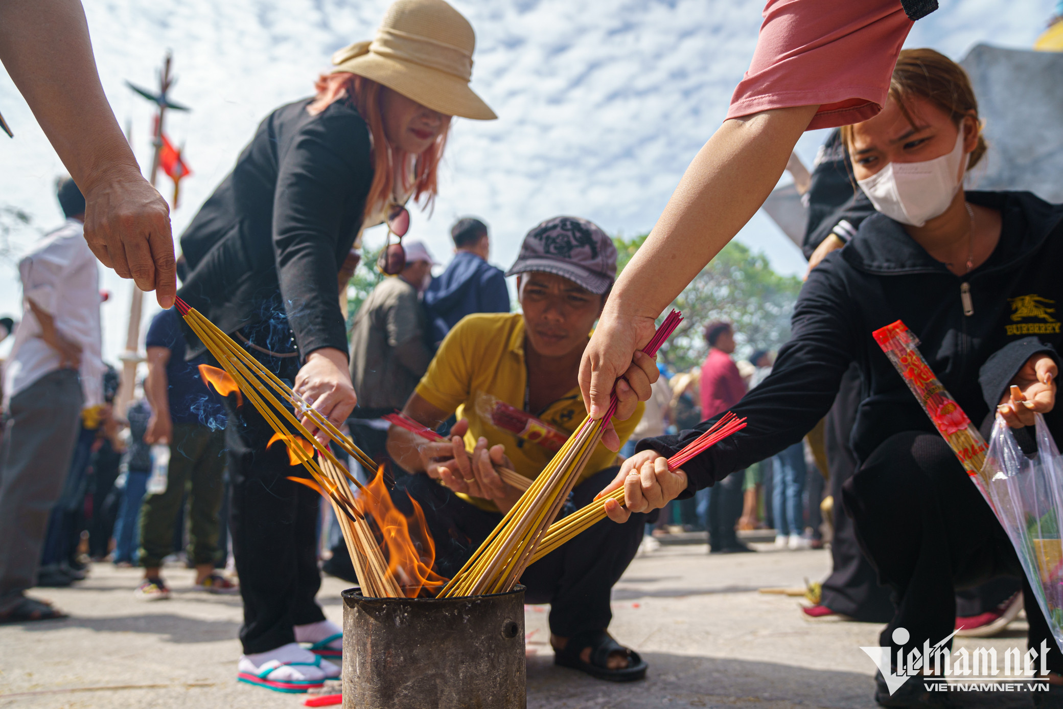 Dòng người đông đúc thi nhau thắp nhang khiến quang cảnh rất nhiều khói.