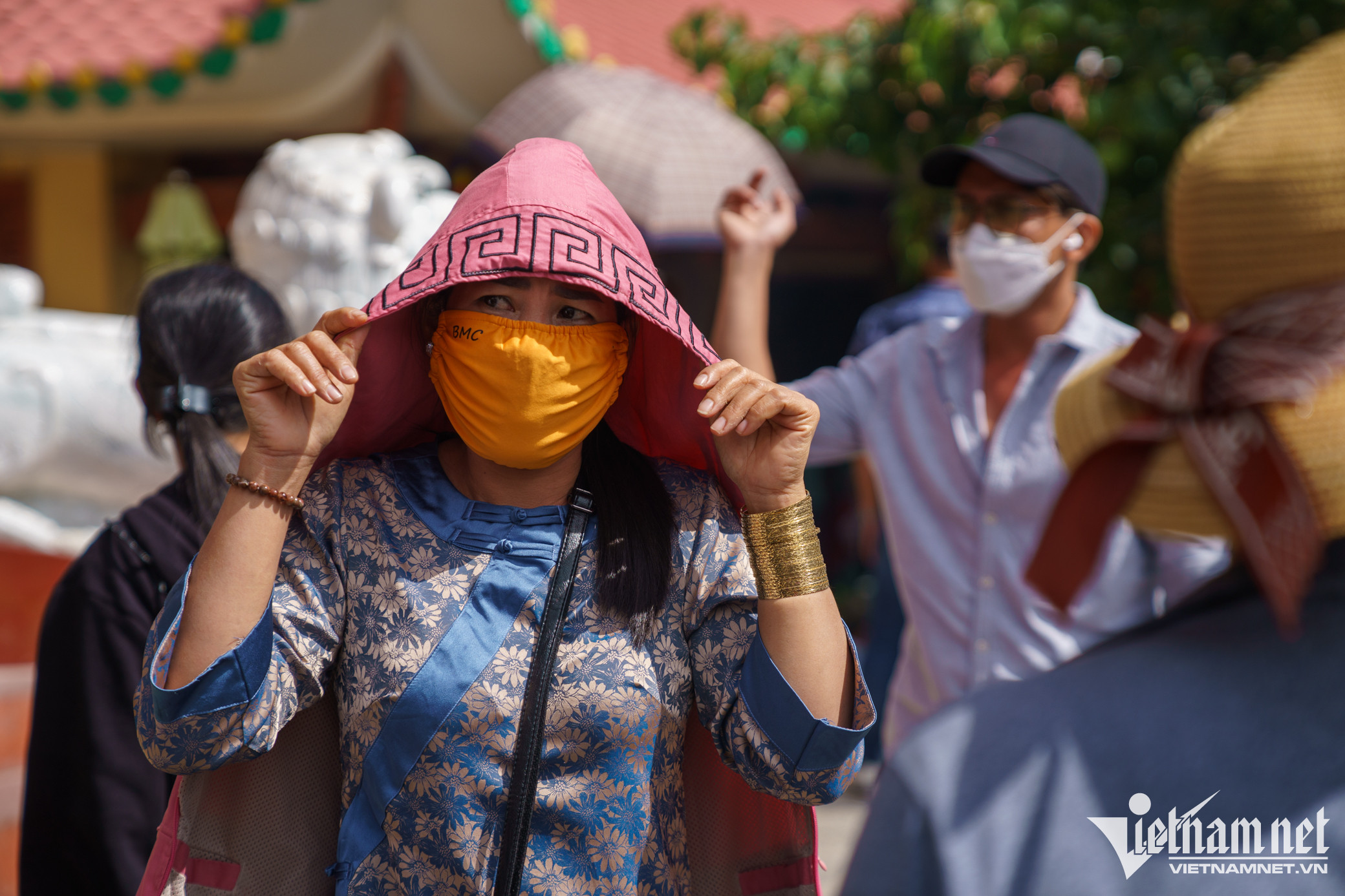 Nhiều du khách bất chấp nắng nóng, chen chân để được vào viếng tại điện Bà.