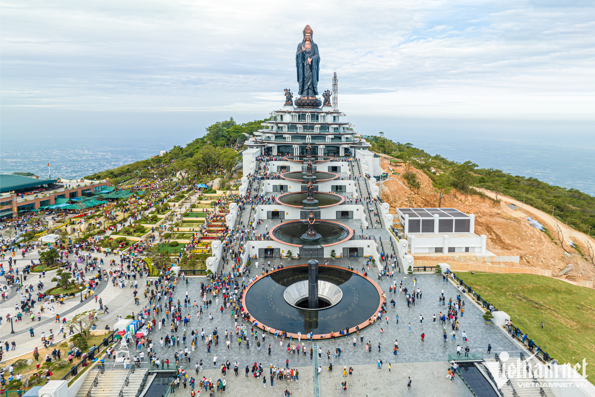 Gia đình chị Trâm đến từ TP.HCM cho biết, do gần nhà nên đây là điểm đến quen thuộc. "Mọi năm cả gia đình tôi đến viếng bà sau đó về, năm nay mọi người muốn lên trải nghiệm thêm công trình hùng vĩ phía trên đỉnh núi này", chị Trâm chia sẻ.