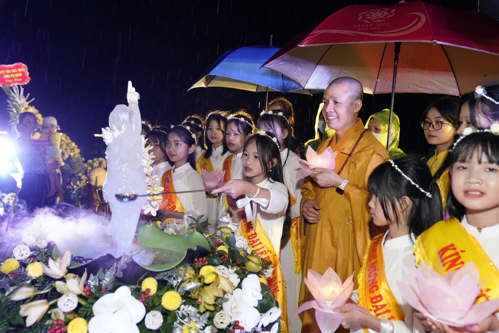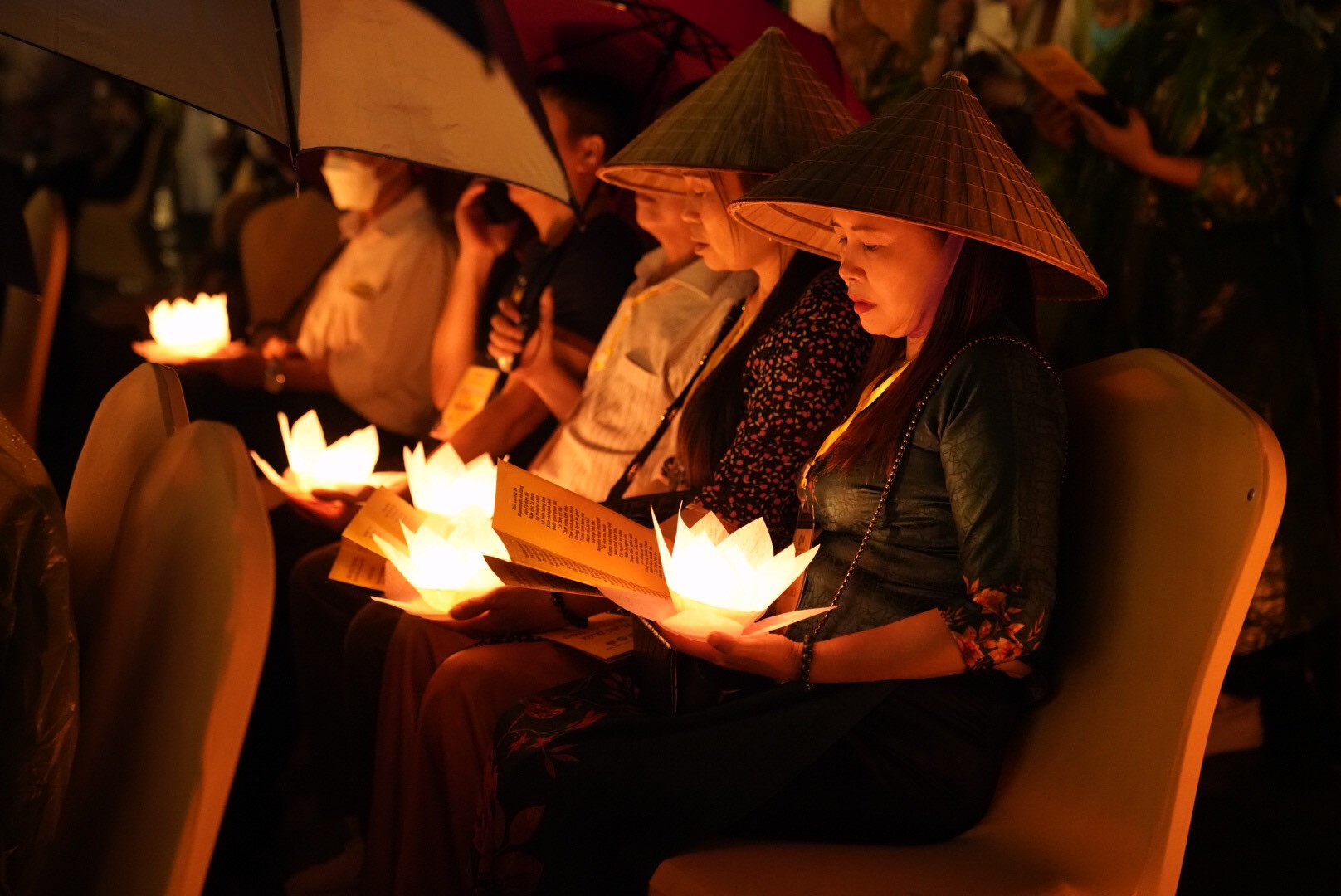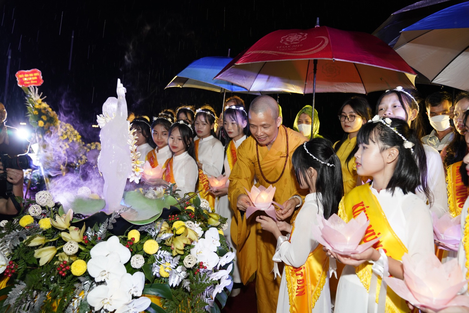 Tối 15/5, hàng nghìn người đã ngồi dưới trời mưa tại chùa Tam Chúc để mừng Phật Đản 2022, Phật lịch 2566.