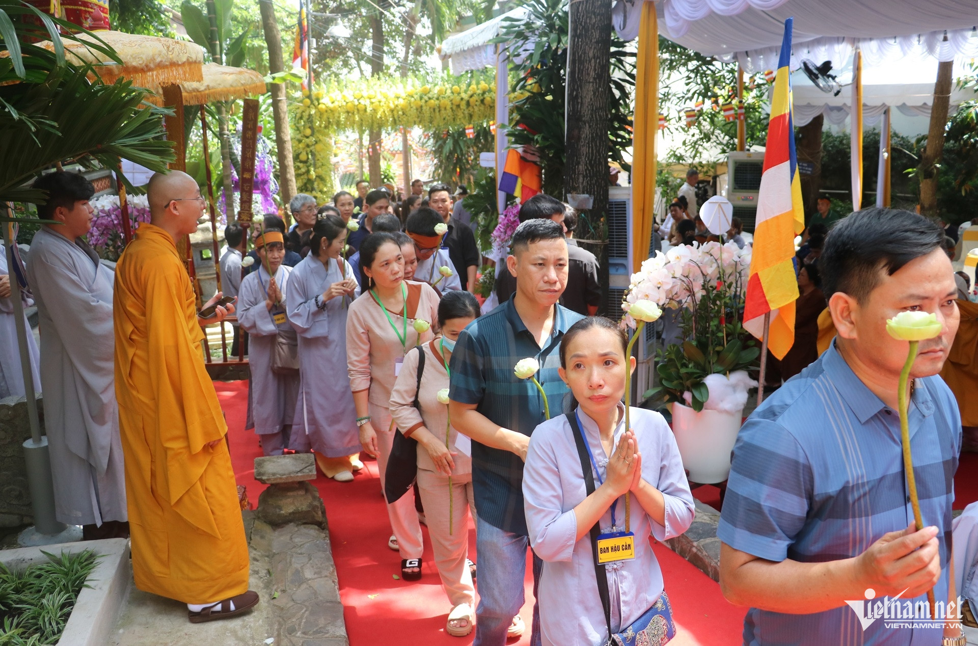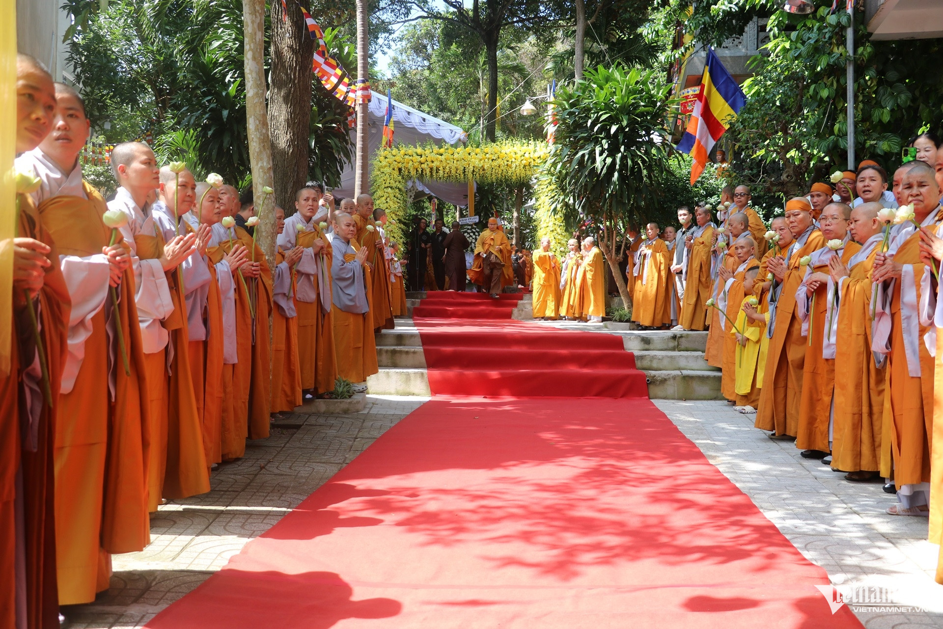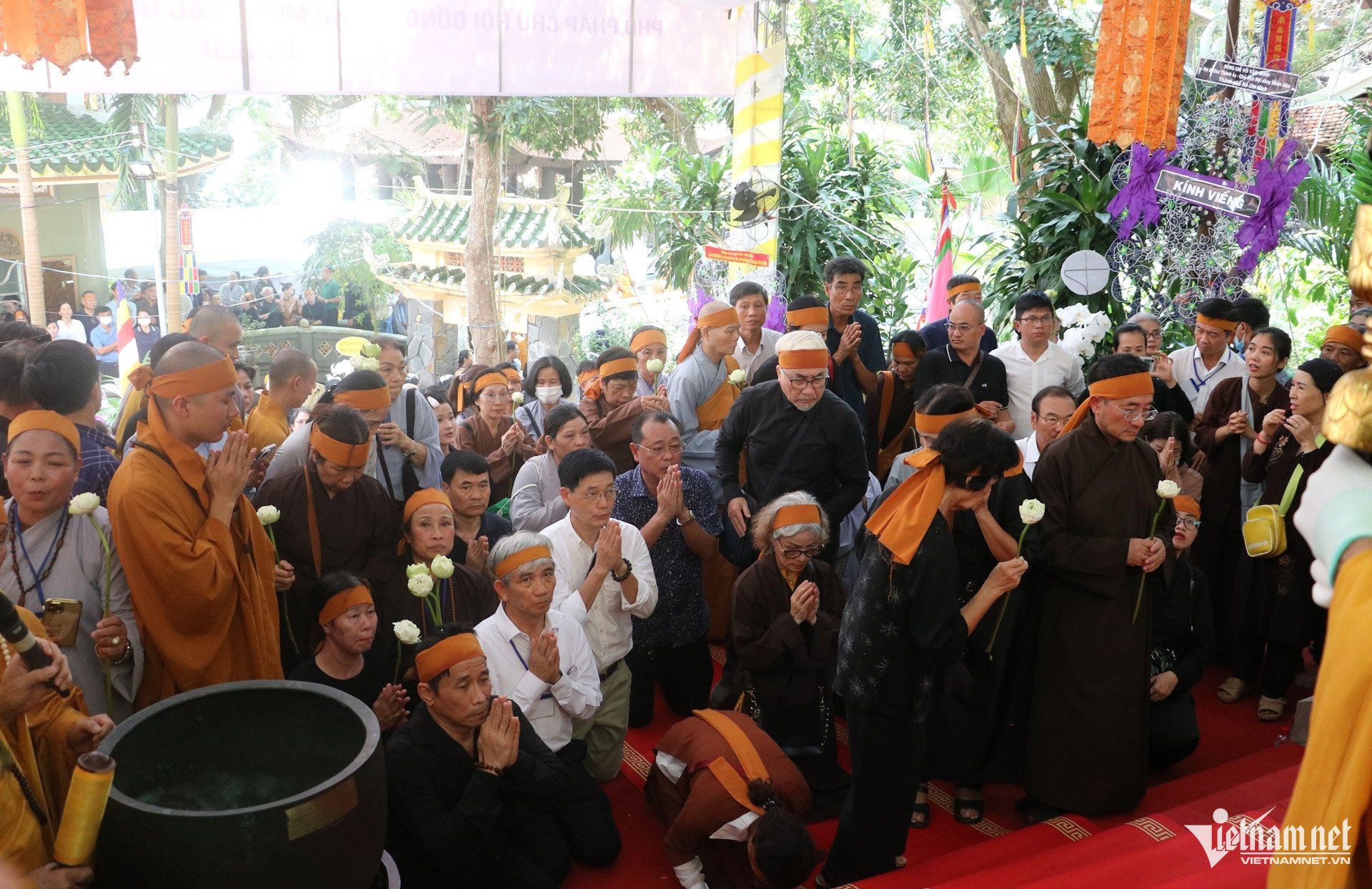Không khí trang trọng, thành kính bao trùm khắp khuôn viên chùa, nhiều phật tử chắp tay hành lễ, bày tỏ lòng tri ân đối với vị Trưởng lão Hòa thượng có nhiều đóng góp to lớn cho Giáo hội và Phật giáo Việt Nam.
