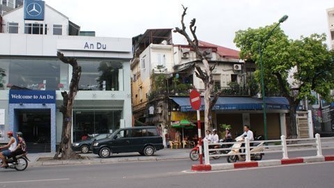 Không chỉ 1 cây mà có tới 2 cây cổ thụ “chết đứng” trước ngôi nhà 22A, 24 đường Điện Biên Phủ. Nhiều ô tô dừng đậu ở đây đều hoảng hồn tránh xa vì sợ cây đè.