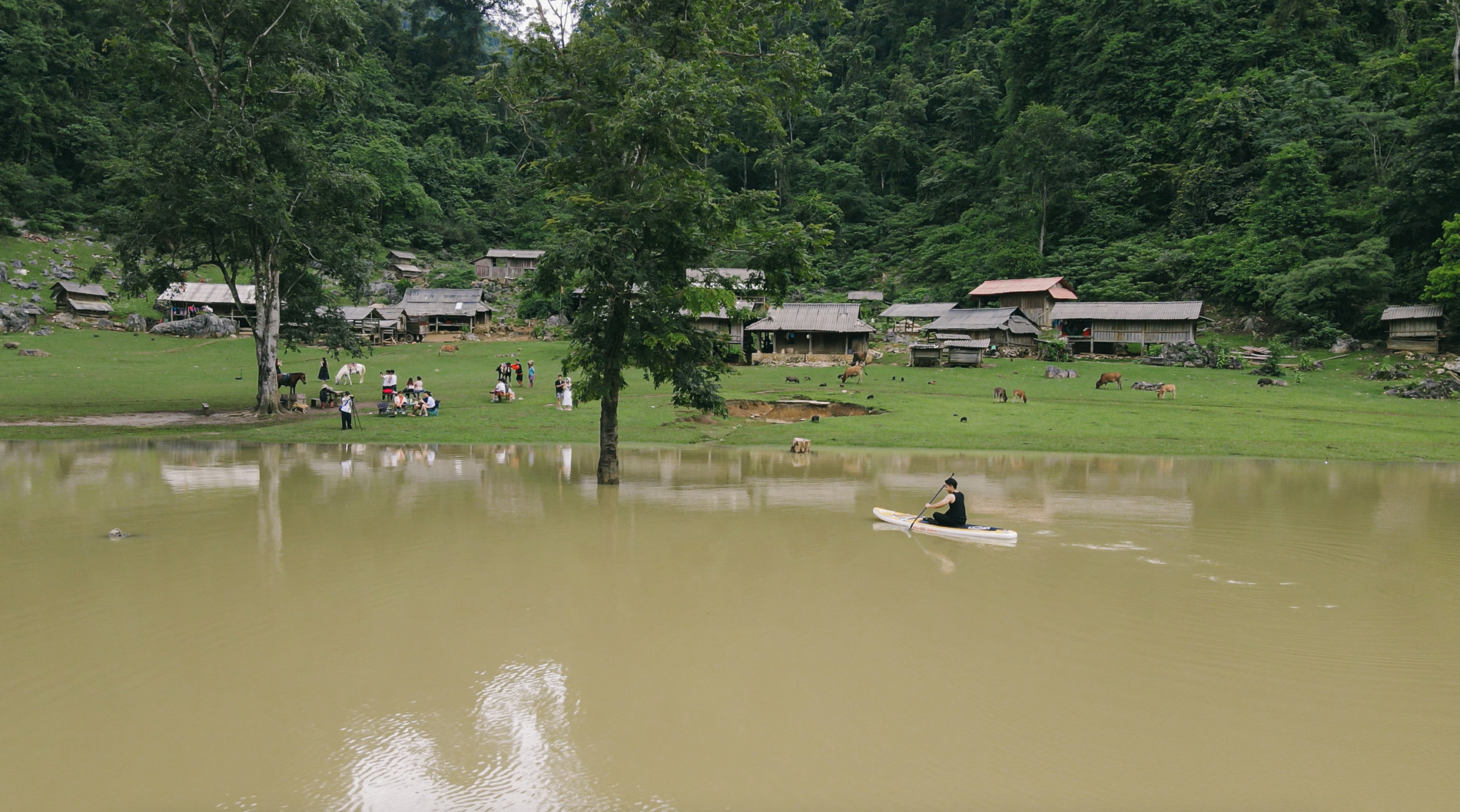 Ở giữa làng là bãi cỏ rộng, bằng phẳng, thoải mái để đám trẻ chạy nhảy, vui chơi hay cho gia cầm, gia súc tự do tung tăng khắp nơi. Xung quanh là những cây cổ thụ cao lớn và các khối đá vôi nhấp nhô, tạo nên khung cảnh đầy hoang sơ, ấn tượng