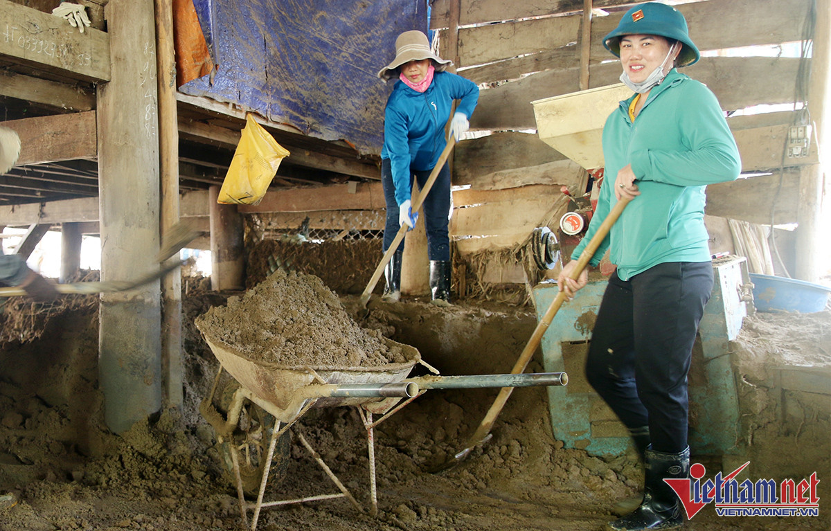 “Bùn đất ngâm nước cả mấy ngày, nín rất chặt, rất khó để xúc đưa ra ngoài. Mỗi lần đào lên được quyển sách, quyển vở mà xót xa, không biết các tới đây các em lấy gì để học” - cô Lê Thị Hải Lý tâm sự.