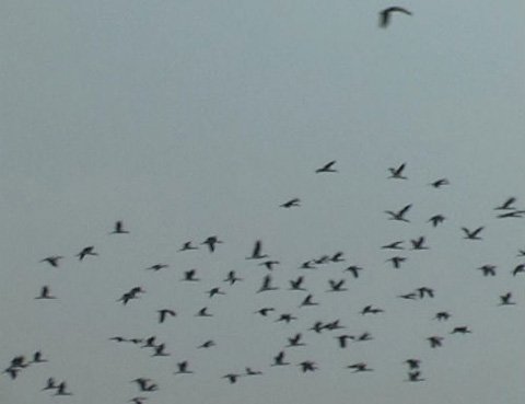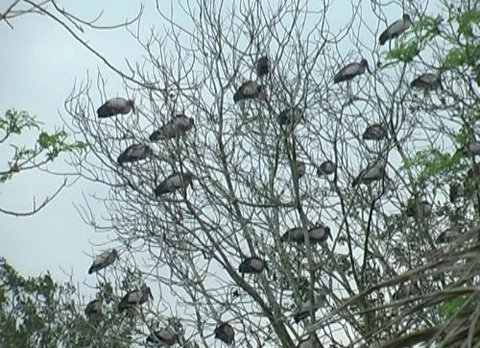 | Hàng trăm con hạc trắng bay về đậu ở khu vực đền Cả |