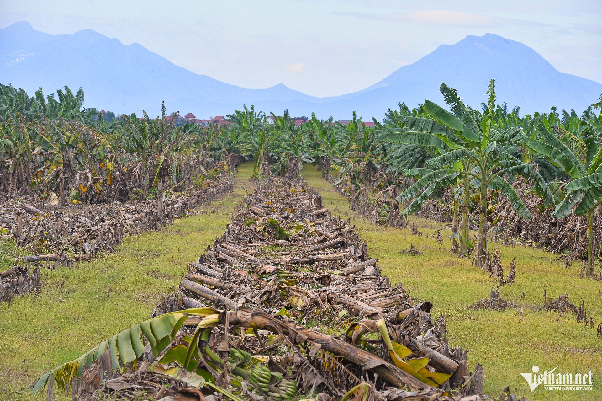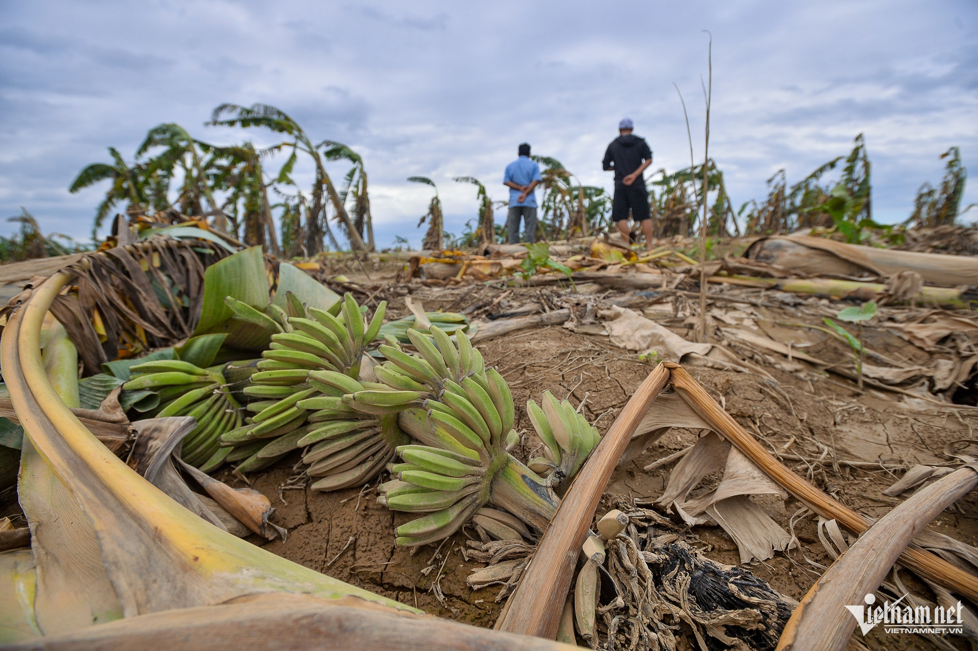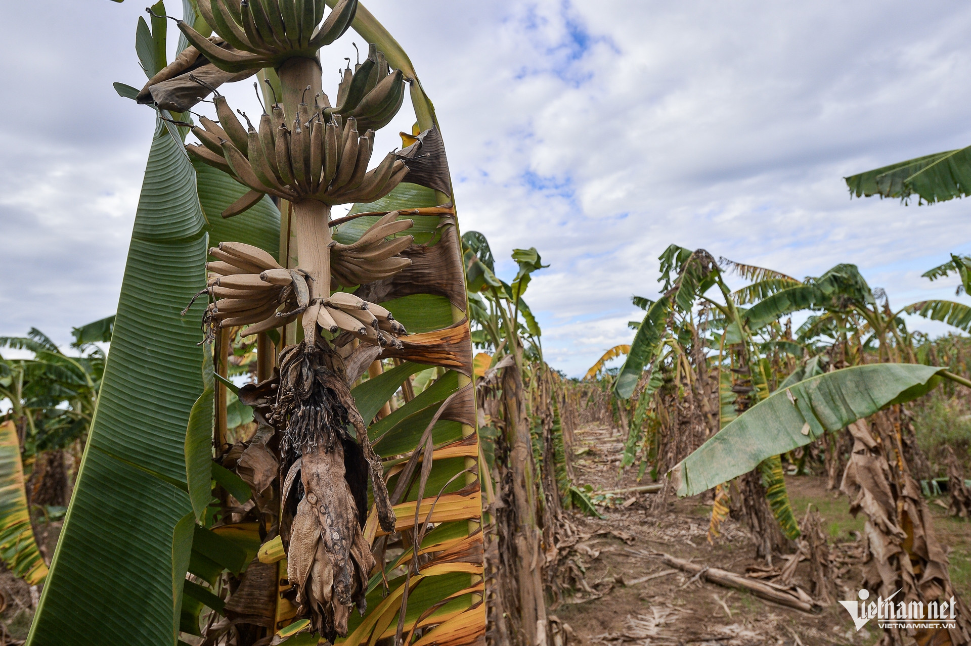 Những cánh đồng chuối hoang tàn xơ xác, nhiều buồng chuối còn non chờ ngày thu hoạch hư hỏng ngay trên thân cây.