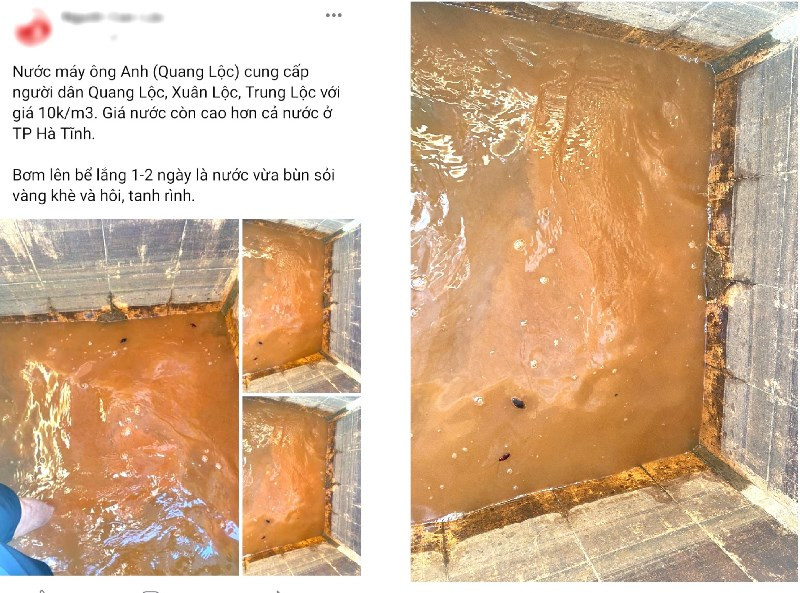 Nhiều tháng nay, hàng trăm hộ dân ở xã Xuân Lộc (huyện Can Lộc, Hà Tĩnh) hết sức bức xúc về việc nguồn nước sinh hoạt (nước sạch) không đảm bảo chất lượng. Sau khi xả vào bể vài ngày thì nước ngả màu vàng, có vị chua, mùi tanh, đọng lại một lớp cặn dày dưới đáy bể.