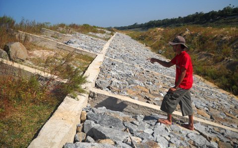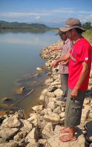 Được biết, khi tiến hành dự án kè bờ các đơn vị đã cho tiến hành chặt các cây dọc bờ sông để làm kè mà theo người dân đó là hề thống phòng hộ duy nhất từ trước tới nay. Cũng theo ông Bình, khi làm kè đá đáng lẽ đơn vị thi công phải cho nạo vét hết lớp đất bùn ở dưới đáy sông rồi mới tiến hành kè, đằng này, họ lại cho xe đổ đất xuống sông rồi kè đá lên trên.