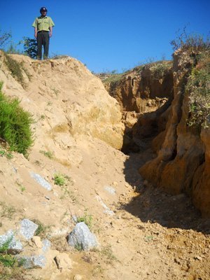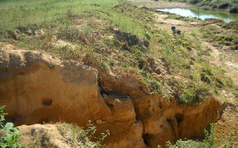 | Sau những cơn mưa, hàng chục rãnh hố sâu 3m đến 4m lại xuất hiện. |