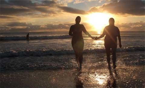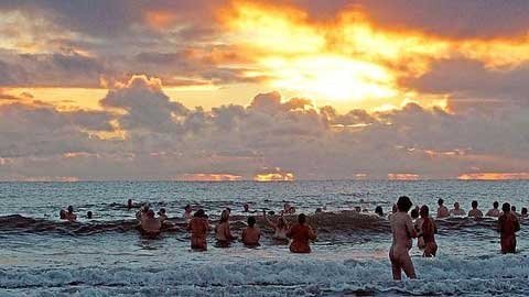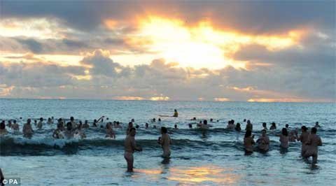 Một đám đông hơn 200 người đã lột quần áo và chạy xuống biển lúc bình minh