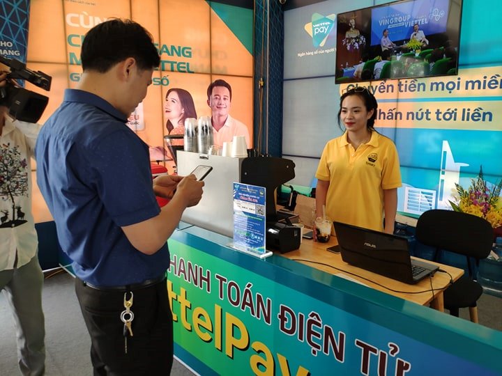 "Cũng tại gian hàng này, Viettel mời 1 cửa hàng cafe có thương hiệu ở Hà Nội để cùng với Viettel cho khách hàng trải nghiệm dịch vụ tài chính điện tử qua Viettel Pay. Khi khách hàng đến gian hàng Viettel sử dụng app Viettel Pay đặt mua các loại đồ uống và chỉ cần quét mã vạch sẽ được thưởng thức đồ uống với giá ưu đãi 10.000 đồng/cốc. Đây là động thái thúc đẩy việc sử dụng công nghệ đem lại tiện ích cho cuộc sống và góp phần thực hiện chính sách thanh toán không dùng tiền mặt mà Chính phủ đang đưa ra. Tài chính điện tử cũng là mảng dịch vụ nhiều tiềm năng mà Viettel sẽ hướng mạnh đến trong thời gian tới" ông Phan Quốc Sơn nói.