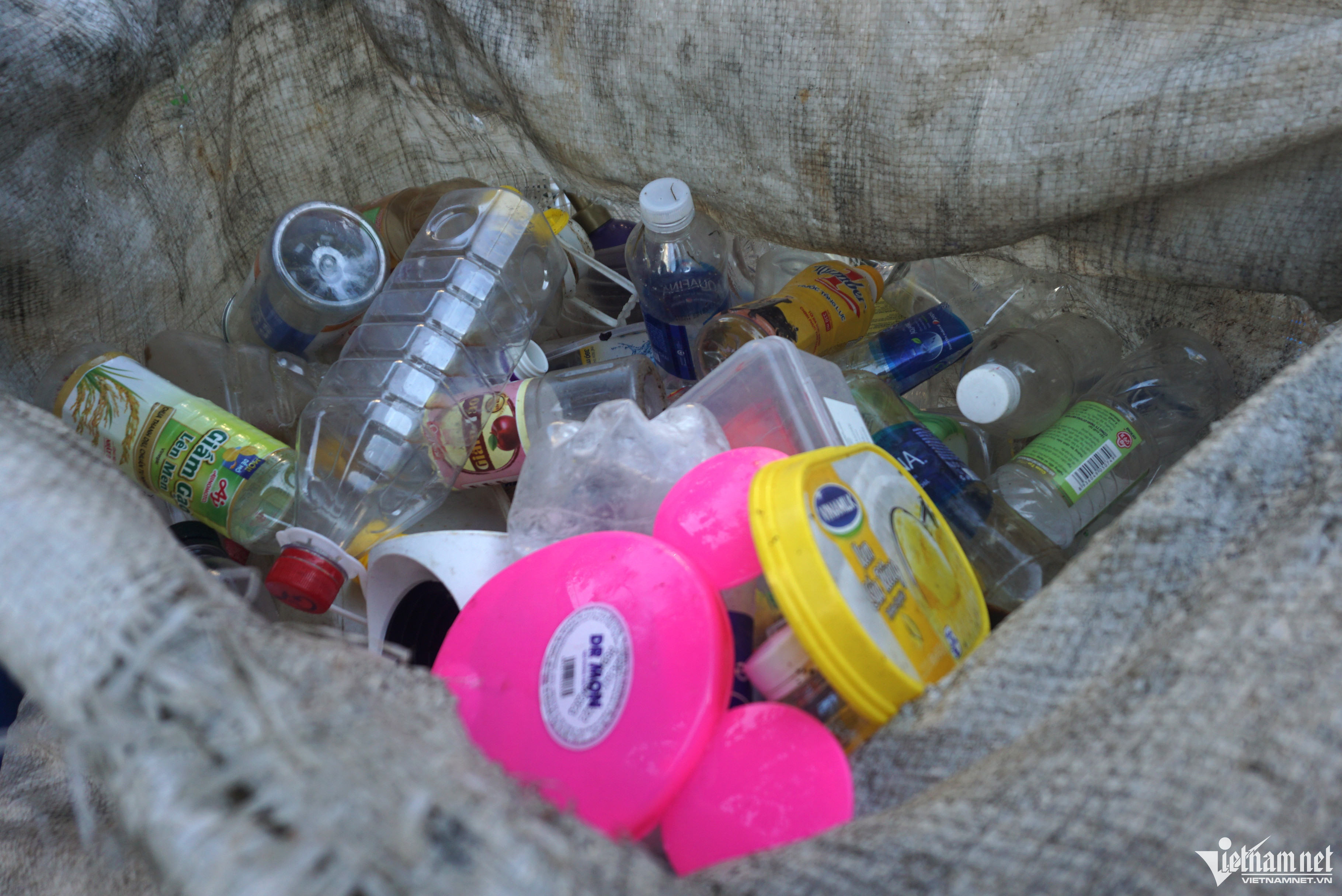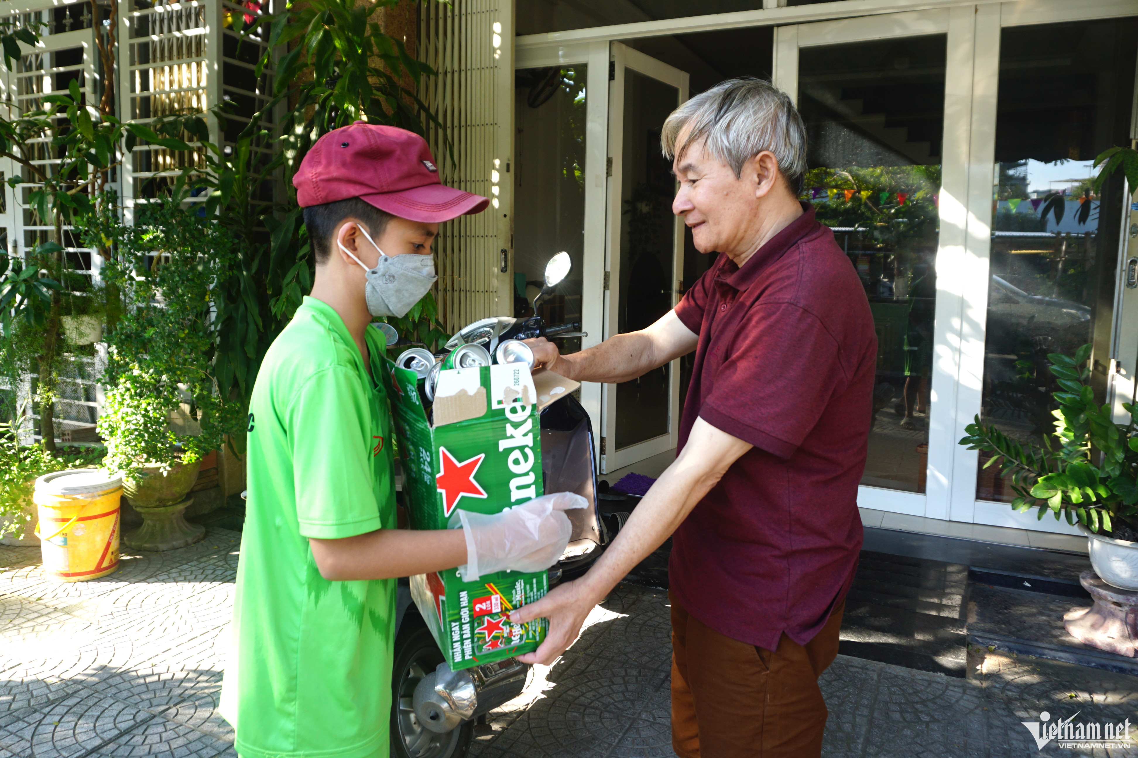 Ông Hà Xuân Tuy gom vỏ lon bia để cho nhóm chia sẻ: "Các cháu tuy còn nhỏ nhưng đã có ý thức bảo vệ môi trường rất tốt. Bây giờ nhà tôi có rác tái chế đều cất lại đến tuần cho các cháu".