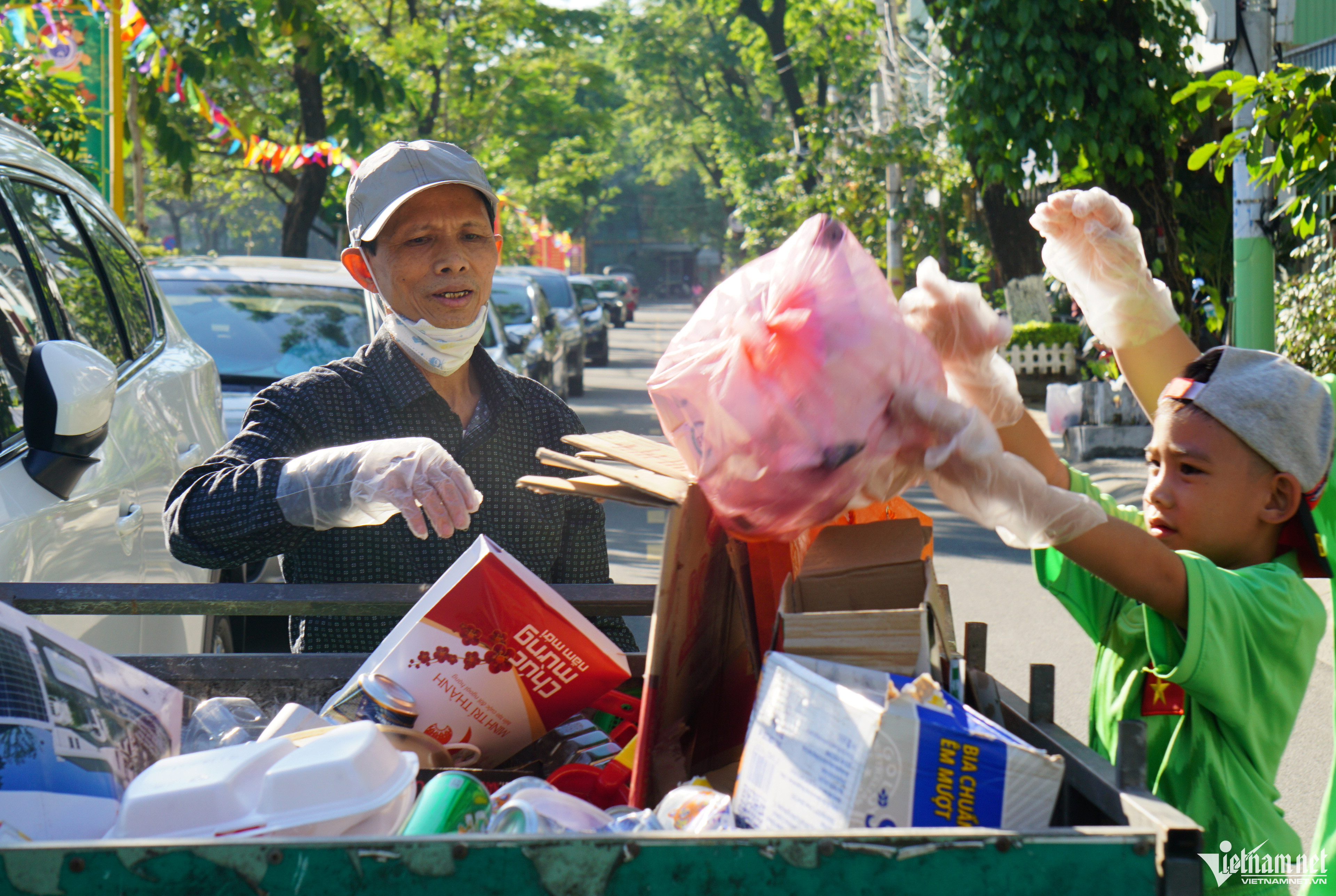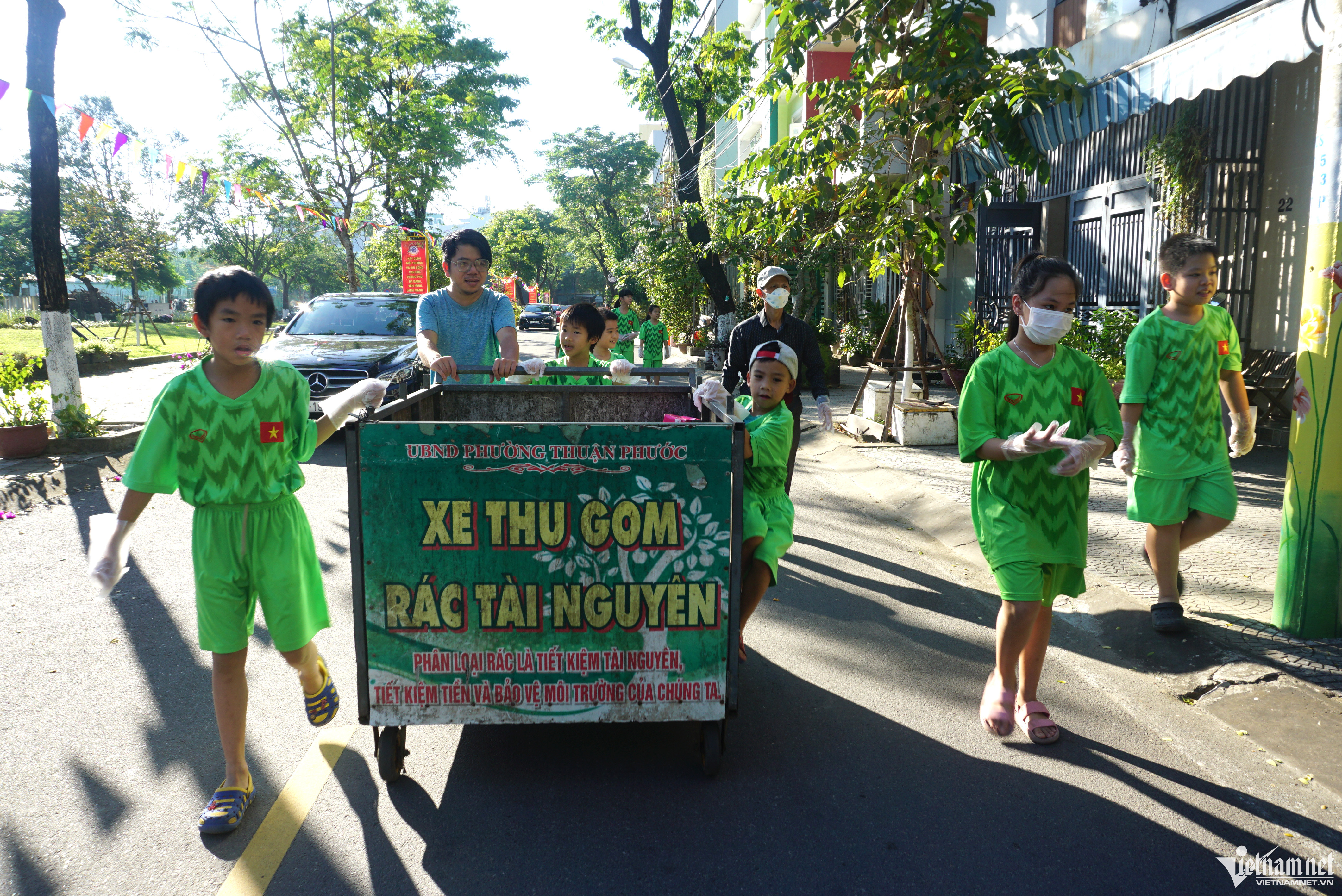 Hơn 4 năm qua (từ năm 2019), đều đặn mỗi chiều cuối tuần, "biệt đội nhí bảo vệ môi trường" với bộ đồ màu xanh lá, đeo găng tay tập hợp bên vỉa hè đường Cao Xuân Dục (phường Thuận Phước, quận Hải Châu, TP Đà Nẵng) đẩy chiếc xe tự chế rảo quanh khu dân cư để thu gom rác tài nguyên.