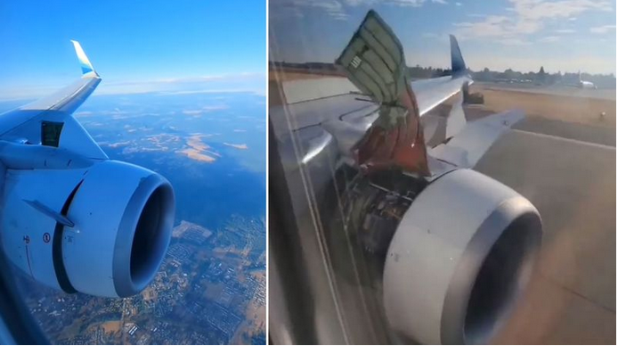 Một đoạn video được hành khách trên chuyến bay đăng tải lên mạng xã hội cho thấy phần nắp đậy động cơ bị xé toạc khỏi chiếc Boeing 737-900 ngay sau khi máy bay hạ cánh xuống sân bay.