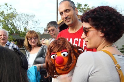 | Hòa trong không khí vui Tết cổ truyền của người Việt, du khách phương Tây đang xem biễu diễn rối của 1 du khách khác đoàn tại Đại Nội Huế vào ngày mùng 3 Tết. |
