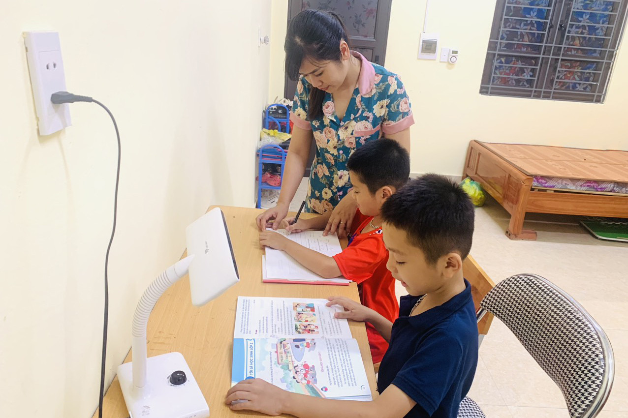 Cô Chấn cho biết, năm 2020, cô bắt đầu nhận công tác tại Trường Tiểu học và THCS Ngọc Vừng. Do nhà trên đất liền (ở huyện Vân Đồn) nhưng phải ra đảo để công tác nên cô quyết định đem theo 2 con còn nhỏ (lớp 2 và lớp 4) đi cùng để tiện chăm sóc và giảng dạy.