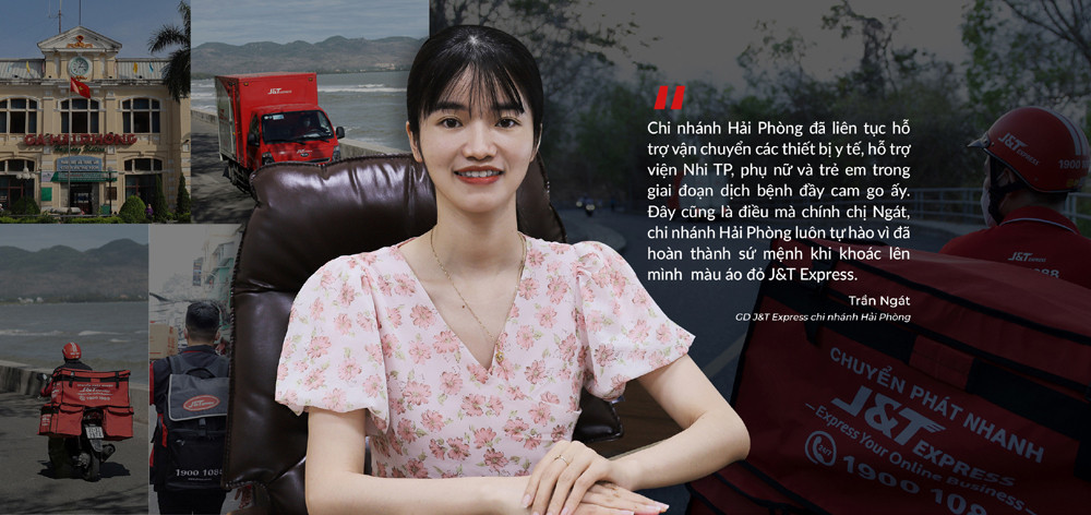 Ngoài các shipper, đội ngũ nhân sự cũng đóng góp vào hành trình chinh phục người dùng, đối tác của J&T tại Việt Nam. Chị Trần Ngát, Giám đốc J&T Express chi nhánh Hải Phòng là một trong những nhân sự đồng hành cùng đơn vị từ những ngày đầu thành lập công ty. Khi đó chị phải tự lo mọi thứ từ khâu tuyển dụng nhân sự, phát tờ rơi giới thiệu dịch vụ, gặp gỡ từng người bán hàng để thuyết phục hợp tác… Sau này, mọi chuyện dần trở nên thuận lợi và nhanh chóng hơn nhờ sự đồng lòng, giúp sức từ đội ngũ nhân sự trẻ, nhiệt huyết.