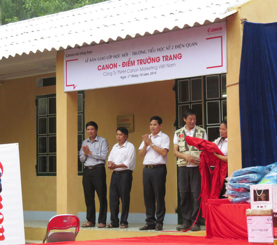 Sau một thời gian khảo sát và xây dựng, ngày 17/10, Canon đã trao tặng 2 lớp học mới cho điểm trường với đầy đủ bàn ghế, bảng đen, giá sách. Ngoài ra Canon còn trao tặng máy in tài liệu, sách vở, dụng cụ học tập và áo ấm mùa đông cho học sinh tại đây.
