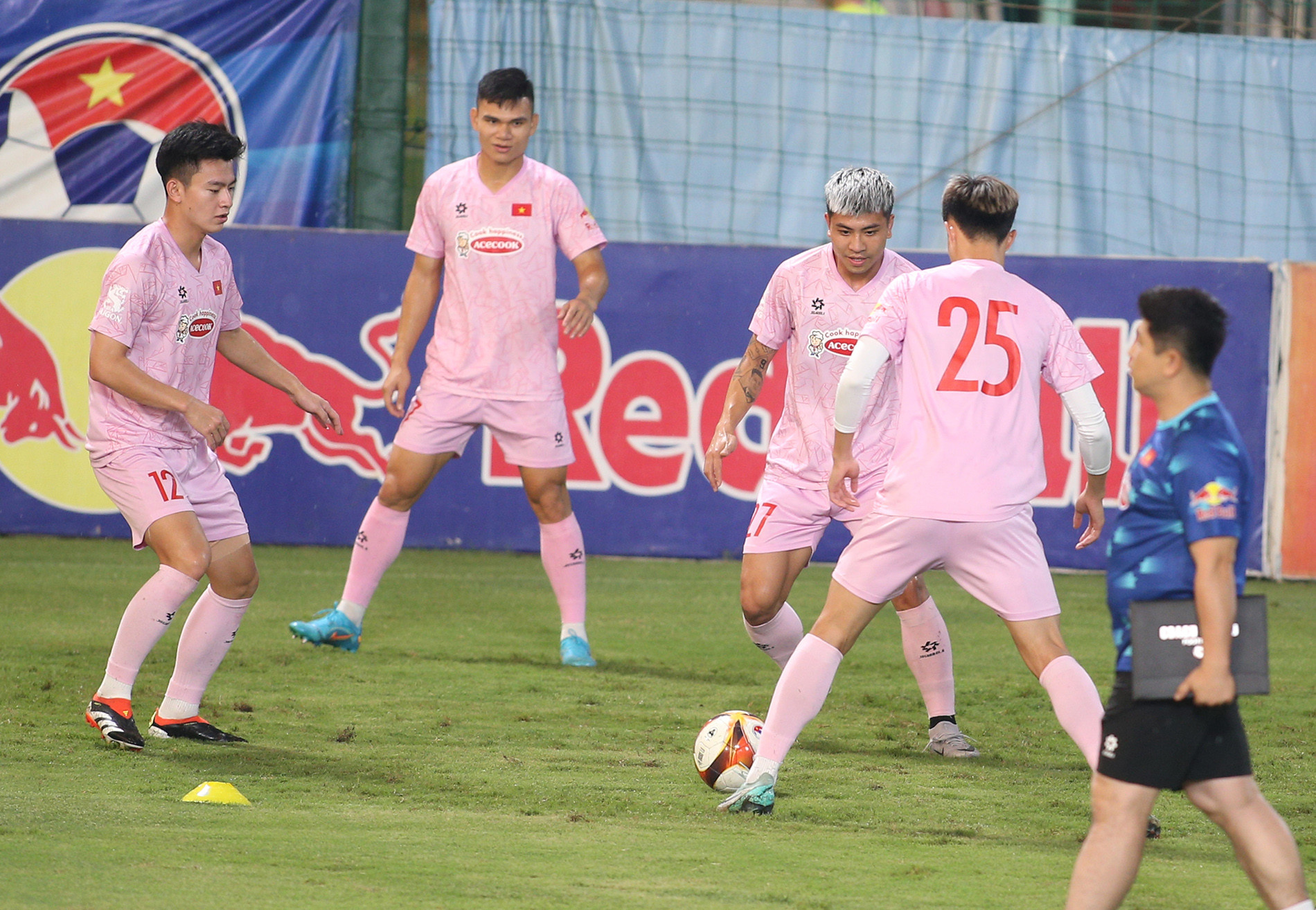 Các cựu binh quen thuộc ở tuyển Việt Nam thường xuyên tập cùng cùng một nhóm, được cho là sẽ đá chính ở trận gặp Philippines.